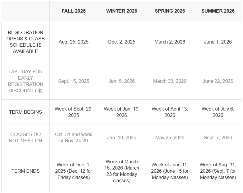 Please visit our website for more information about our world language classes, fees, discounts, and a calendar with dates for our terms.